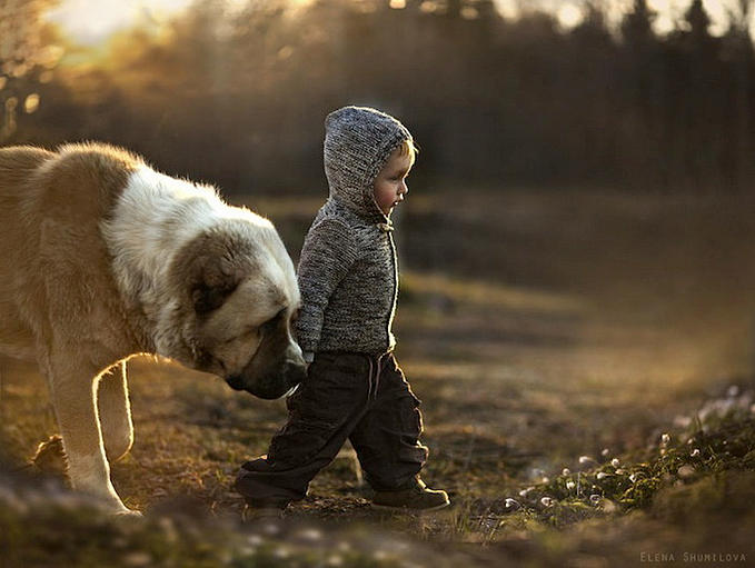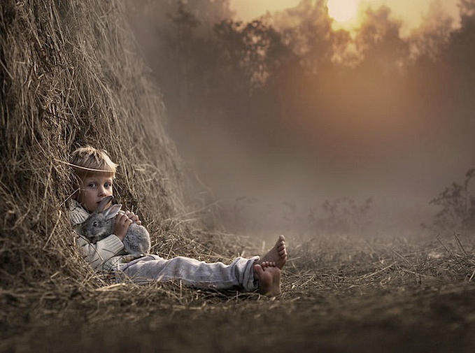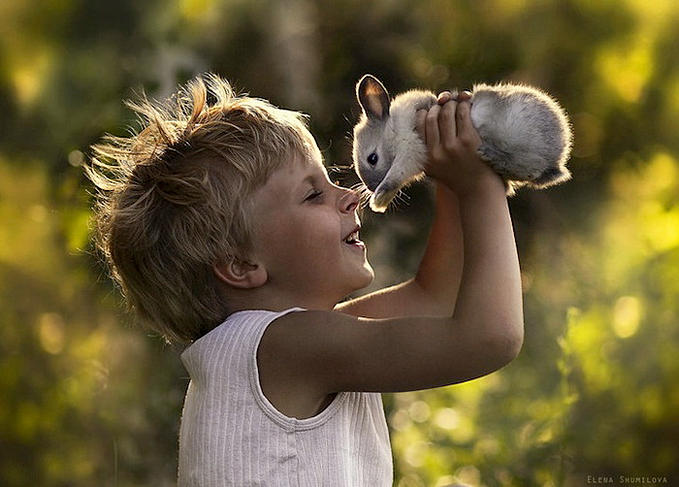 На снимках можно увидеть мальчиков, которые играют с собаками, кролями, кошками, утятами и прочей живностью. Красивые деревенские пейзажи, мягкое освещение, атмосфера тепла и безмятежности – все это присуще работам Елены Шумиловой.